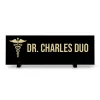Crafted from high-quality materials, this name plate offers the perfect balance of durability and longevity, ensuring that it will maintain its shine and sophistication for years to come. The two sturdy stands that come with the name plate perfectly complement the sleek design, adding a touch of elegance to any desk or workspace.